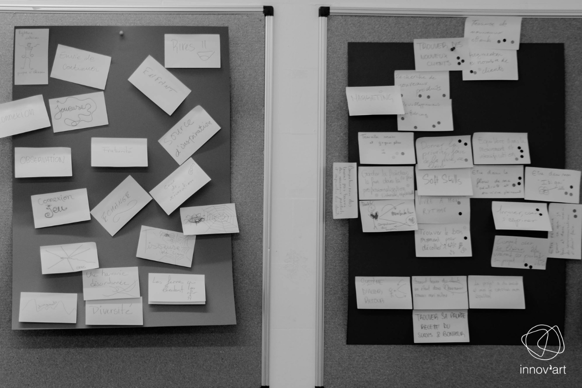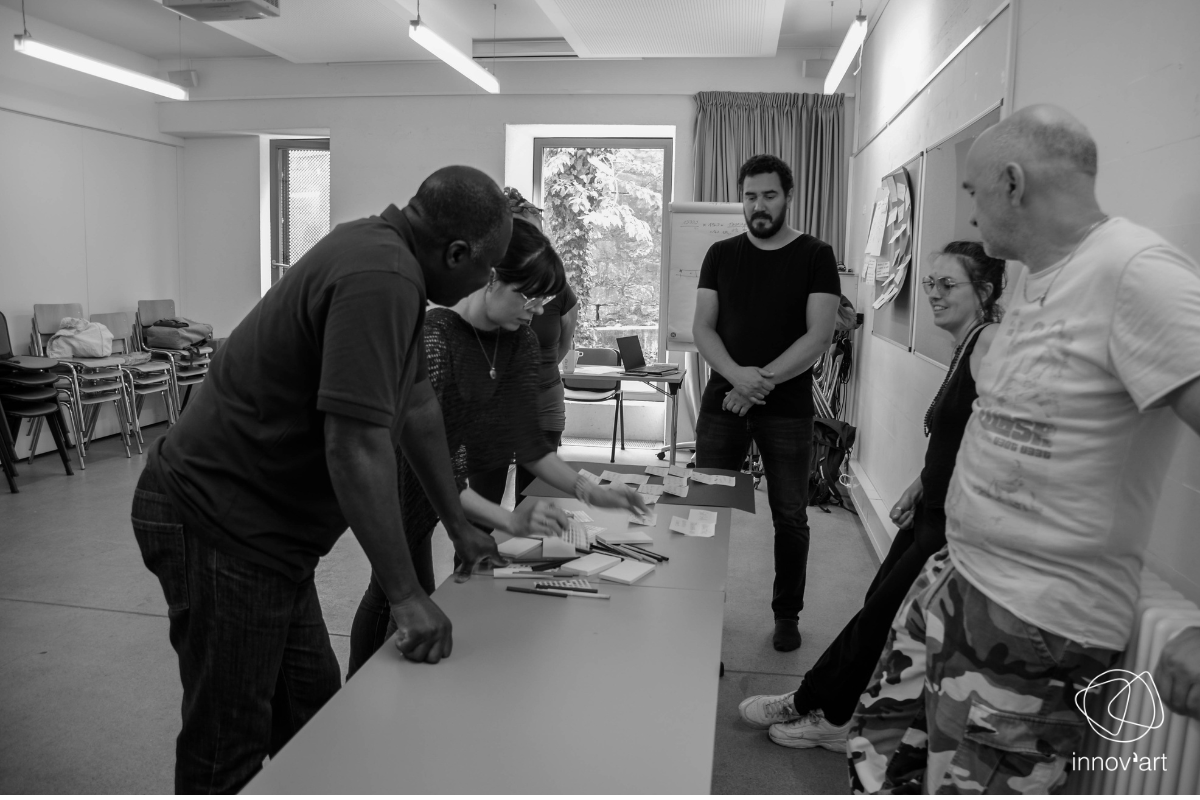 Ces ateliers favorisent l’idéation, la co-création et la prospection, tout en valorisant les parcours et histoires singulières de chaque participant·e.