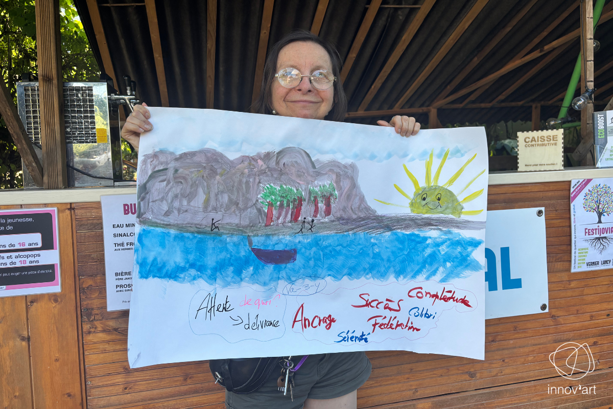 Dans le cadre du Festijovial organisé à la Maison Open Business (à Vernier), l’atelier innov’art® « Moi en vrai — ce que je veux, ce que je crois, ce que je tente » a permis aux participant·e·s de clarifier leurs aspirations personnelles et professionnelles. Co-développé avec une danse-thérapeute, il combinait mouvement, musique et peinture pour libérer les émotions et repartir ancré·e dans ses projets, porté·e par une énergie collective renouvelée.