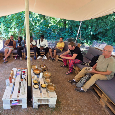 « C’était concret, c’était bien. Cet atelier m’a permis d’être pleinement présent ici et maintenant. Rien que d’être là et d’observer nos échanges, on voit l’évolution que chacun a faite durant la journée. Il faut être ouvert à ceux qui le sont aussi ; les âmes ouvertes finissent toujours par se croiser et faire naître de nouvelles choses. »